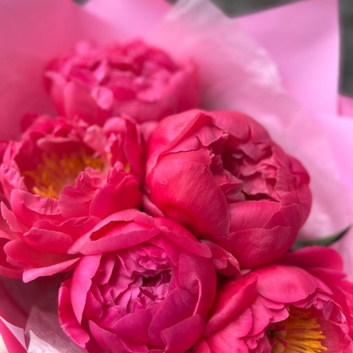 Пион – 5 шт.Лента атласная – 1 шт.Упаковка дизайнерская – 3 шт.
