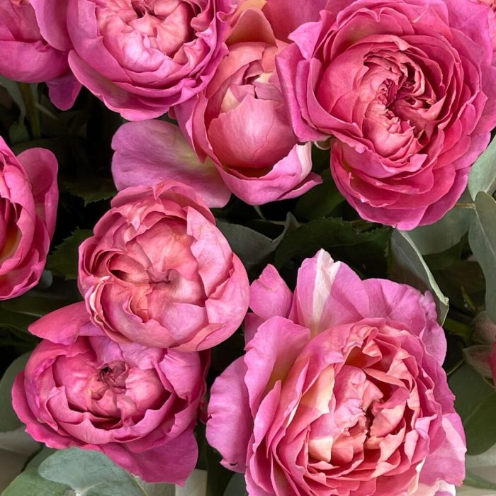 Лента – 2 шт.Эвкалипт – 2 шт.Упаковка – 2 шт.Роза Джульетта – 5 шт.
